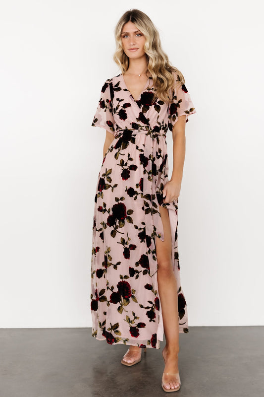 Parisian Velvet Maxi Dress | Blush Rose Floral