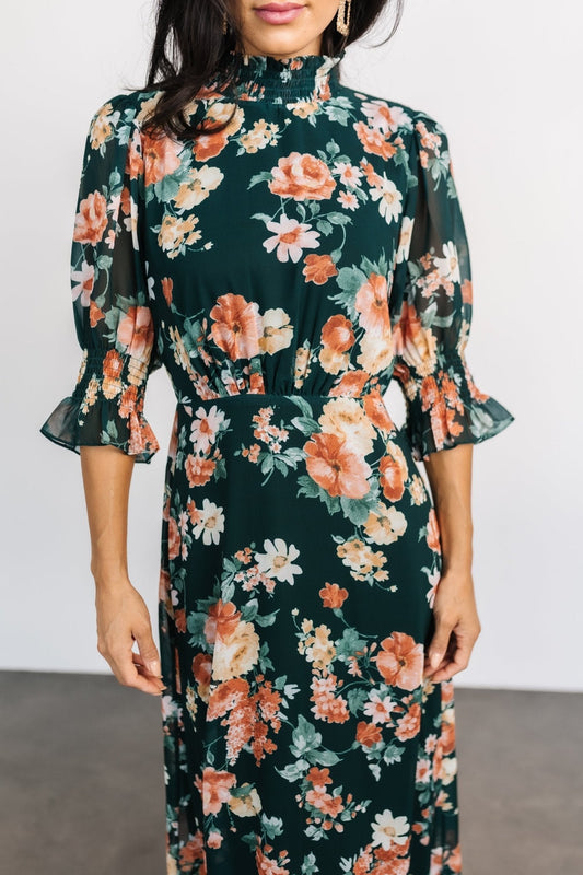 Marie Mock Neck Maxi Dress | Dark Green Floral