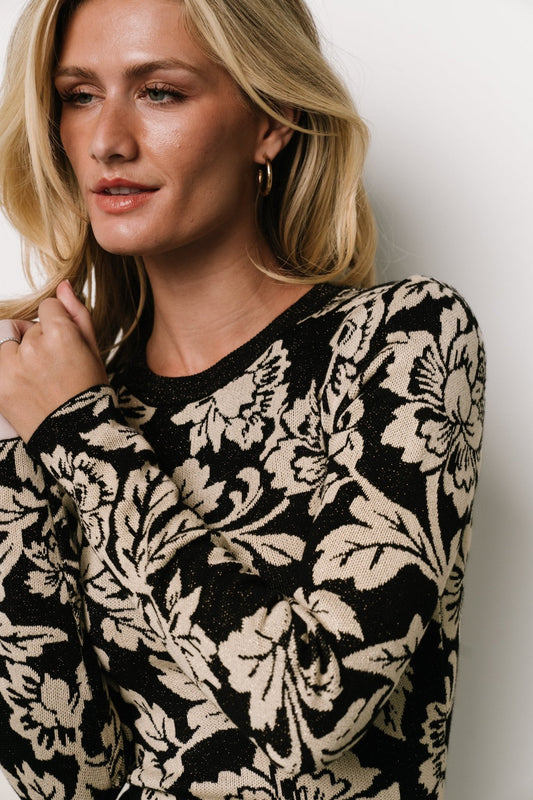 Marci Sweater Dress | Black + Ivory Floral
